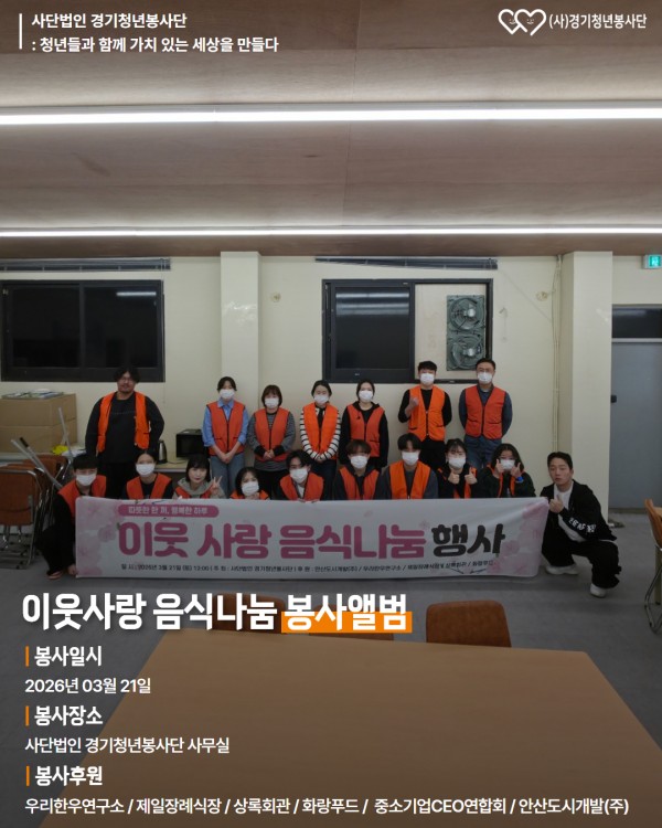 2026년 3월 21일 이웃사랑 음식나눔 자원봉사