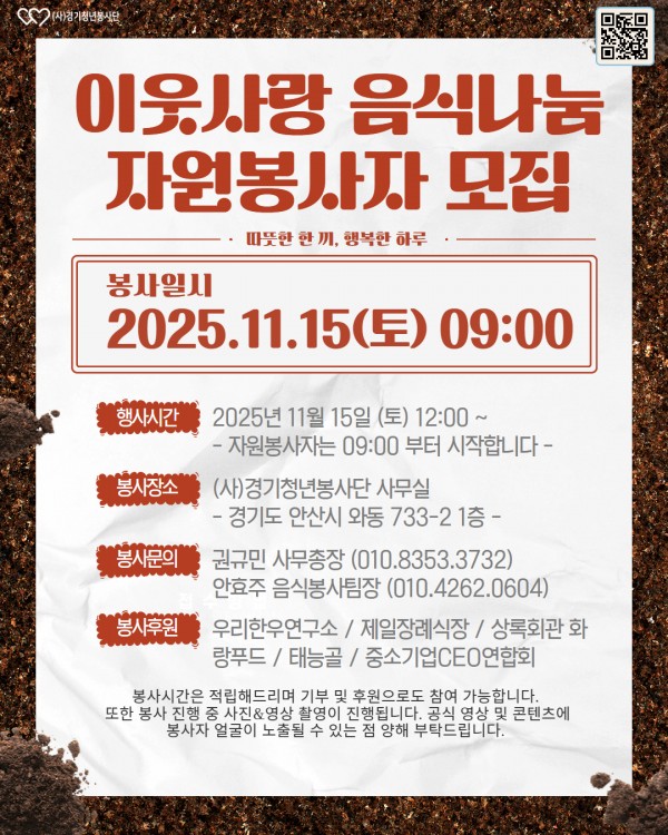 2025년 11월 15일 이웃사랑 음식나눔 자원봉사