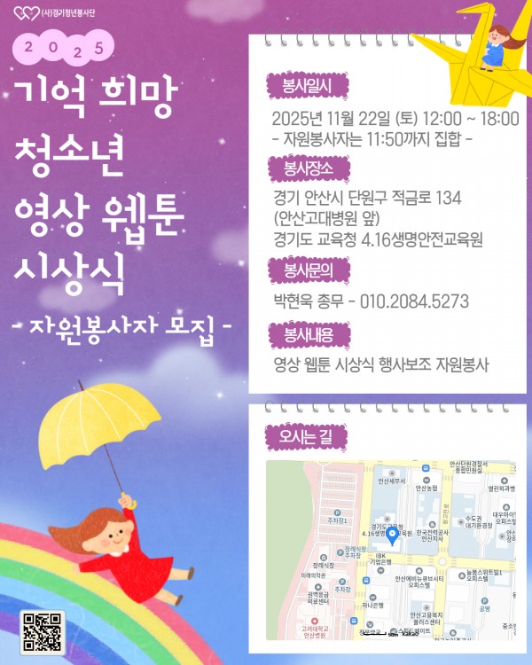 2025년 11월 22일 기억 희망 청소년 영상 웹툰 시상식 자원봉사