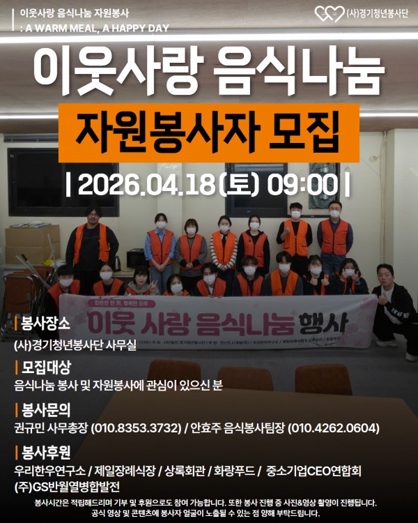 2026년 4월 18일 이웃사랑 음식나눔 자원봉사