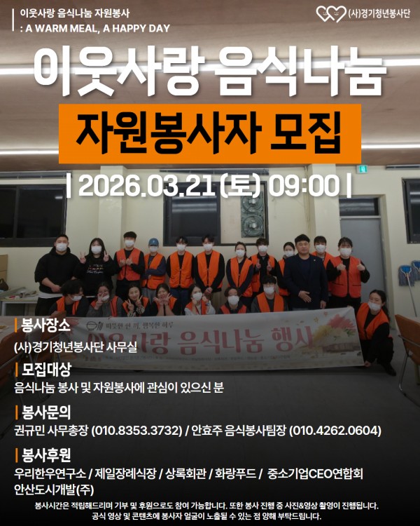 2026년 3월 21일 이웃사랑 음식나눔 자원봉사