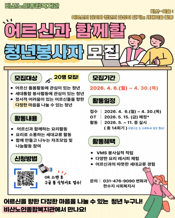 [비산노인종합복지관] 2026년 행복울타리 「비산-이음」 청년 참여자 모집 홍보 - 외부홍보